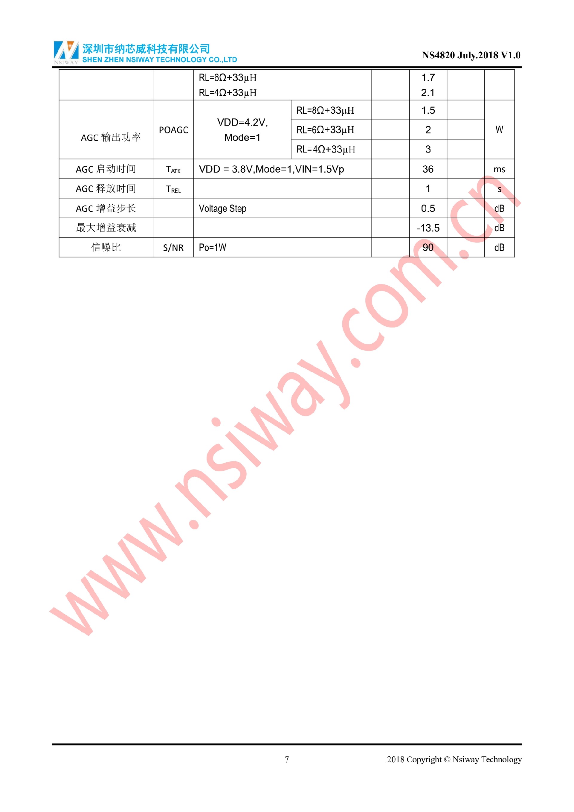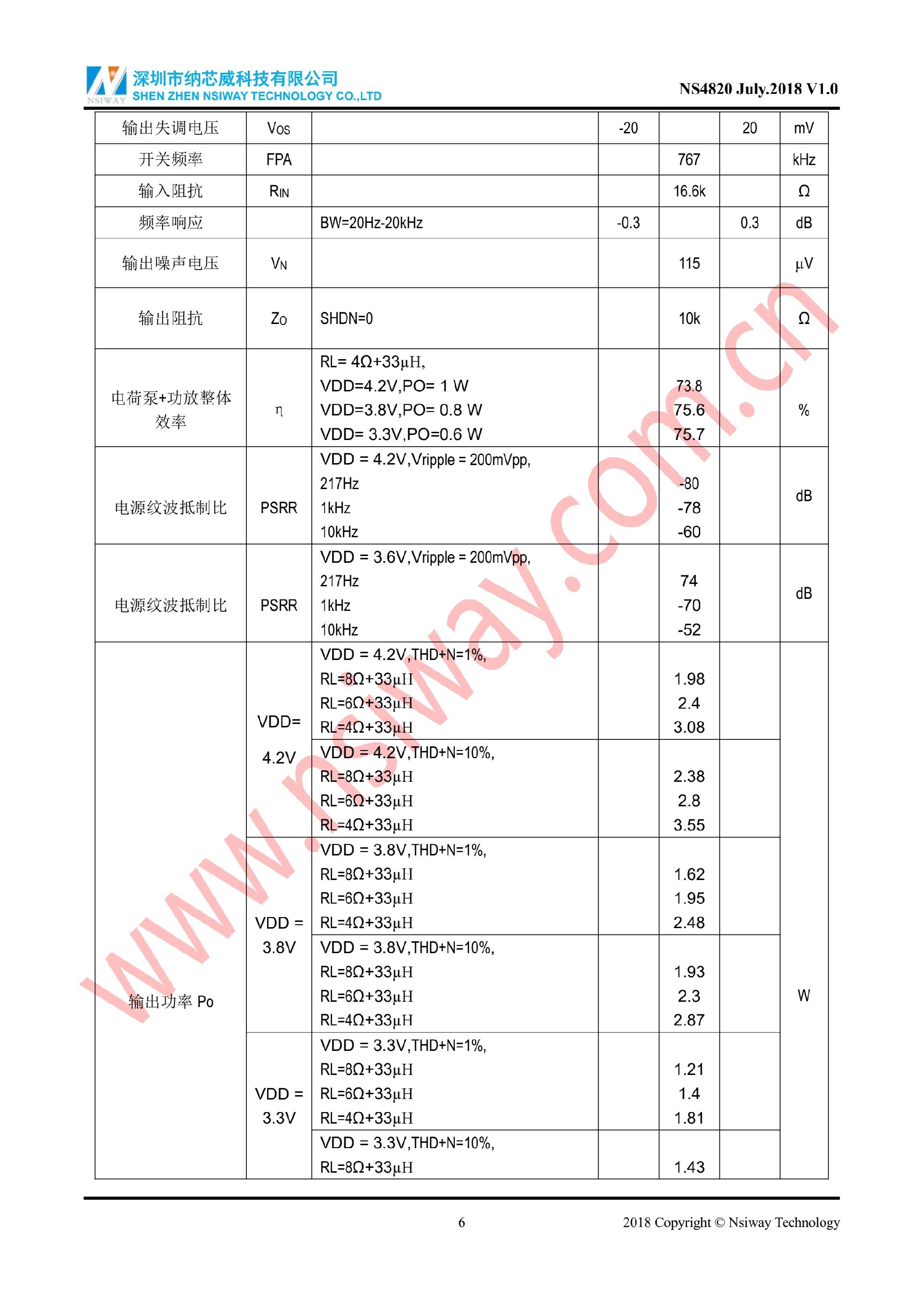 NS4820 2 级 G 类恒定输出音频功率放大器